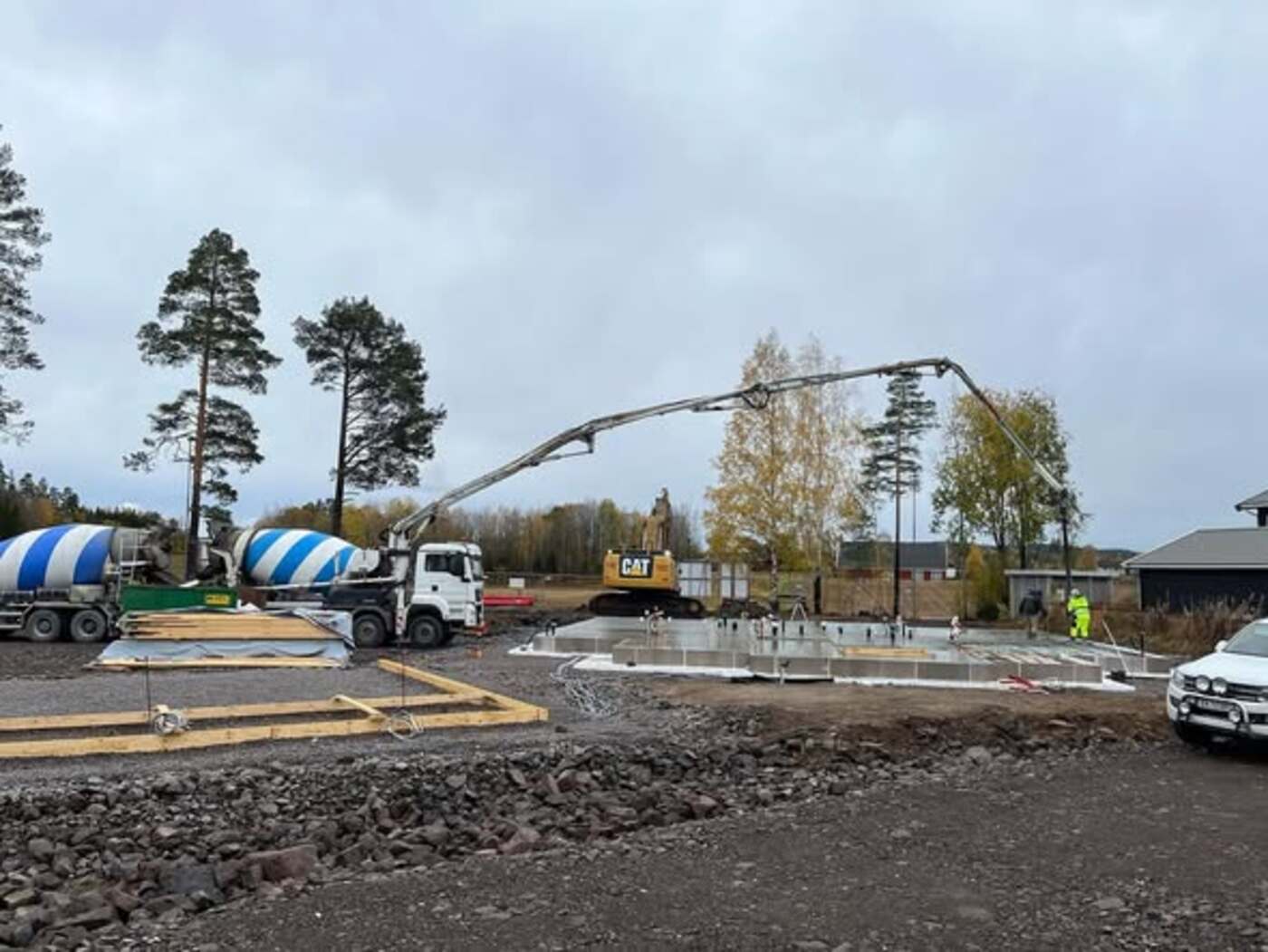 Idag fikk gutta støpt plata for firemannsboligen som @12treelementproduksjon har produsert, og blir krana på plass fortløpende! Snart er vi gang for fult