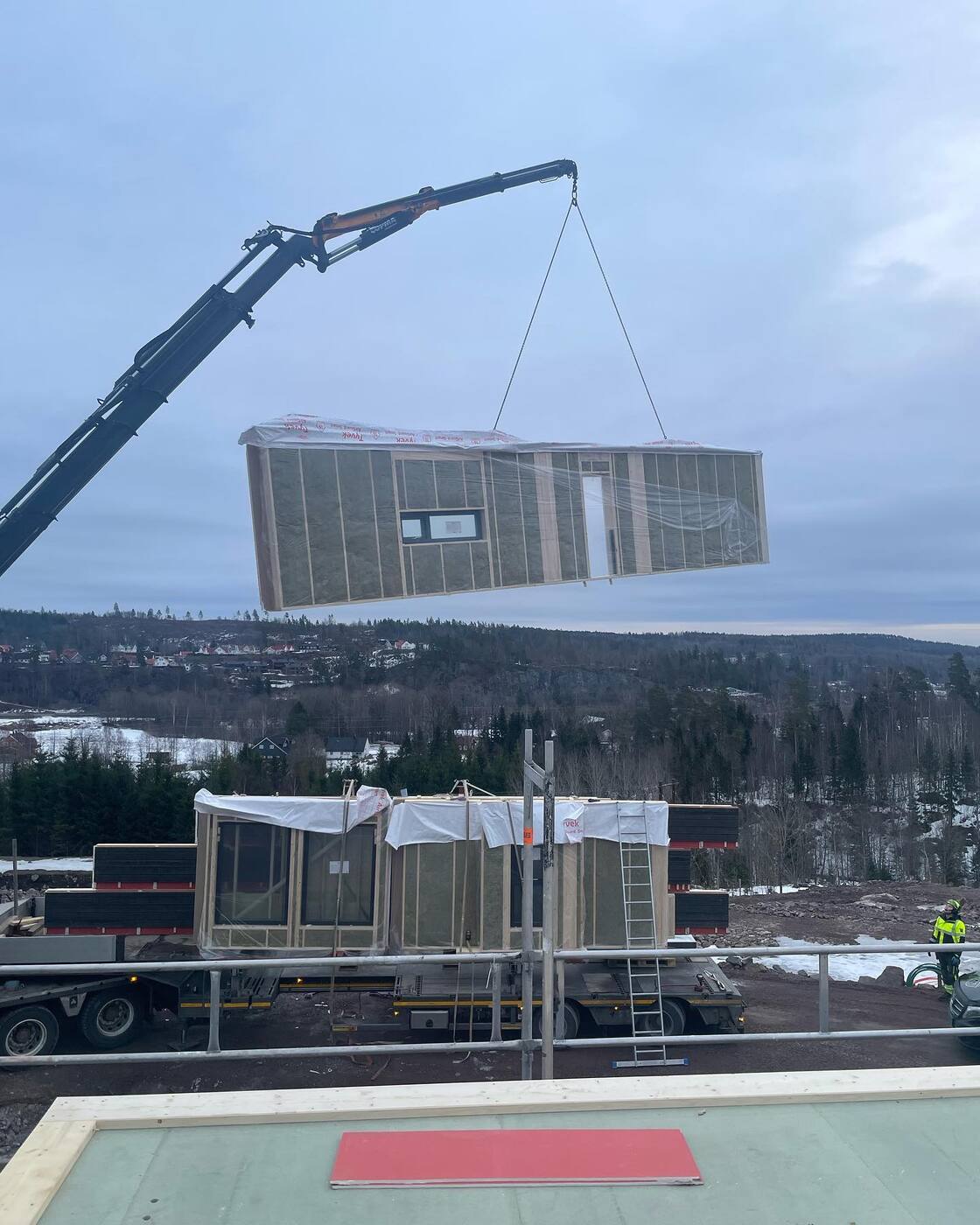 Da var to stk eneboliger klare for innredning, 2 effektive dager med kraning